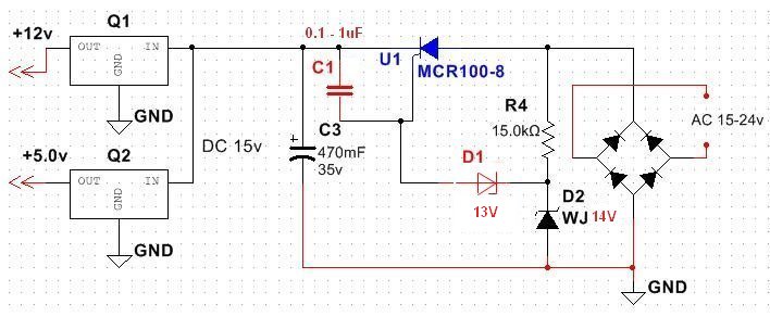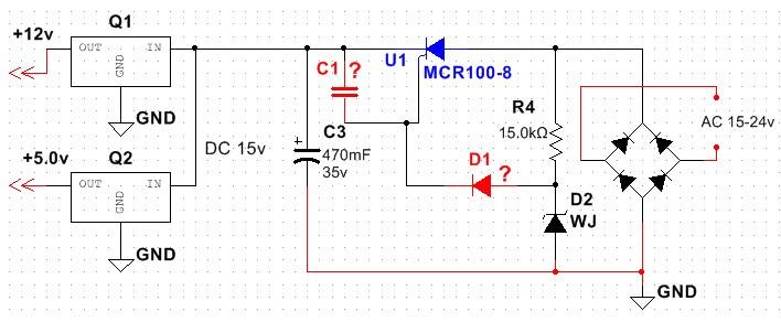 Короче, вся эта канитель с тиристором нужна, чтобы дрочилова небыло. Генератор - источник грязный и непредсазуемый, а 5В там наверно для питания какой-нибудь цифровой схемы.
