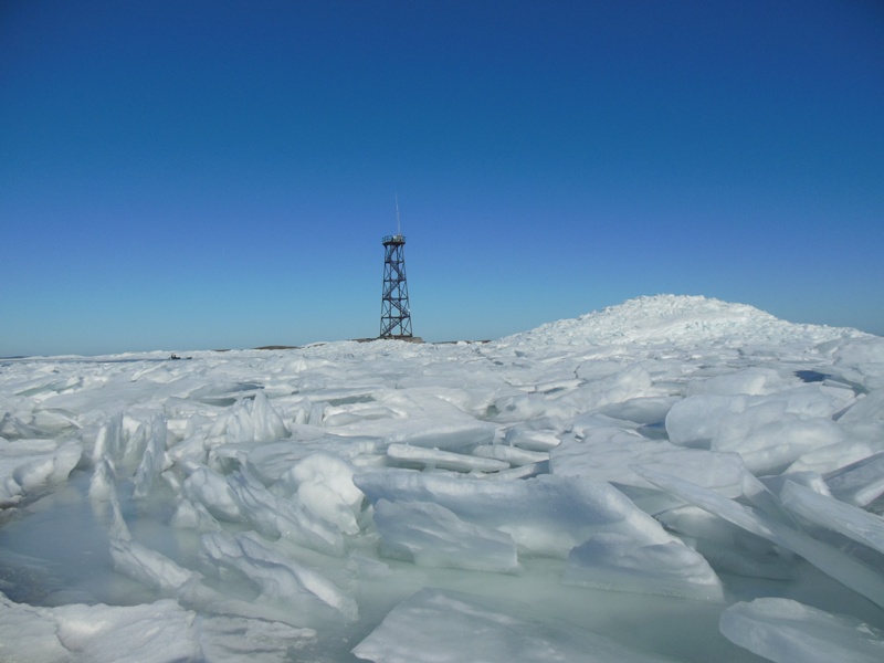 С южной стороны маяка на остров накидало волнами огромные глыбы льда - целые горы.