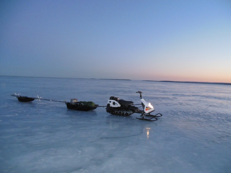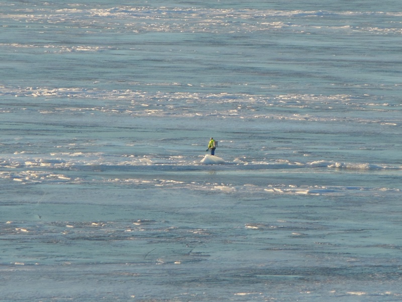 Нужно было засветло добраться до Пиньгубы, чтобы в светлое время суток выбирать безопасный путь среди торосов и трещин. К тому же, беспокойство вызывало то, что ветер мог наделать новых трещин и увеличить старые. Треск льда на озере в течение дня стоял приличный, иногда как пушечная канонада.