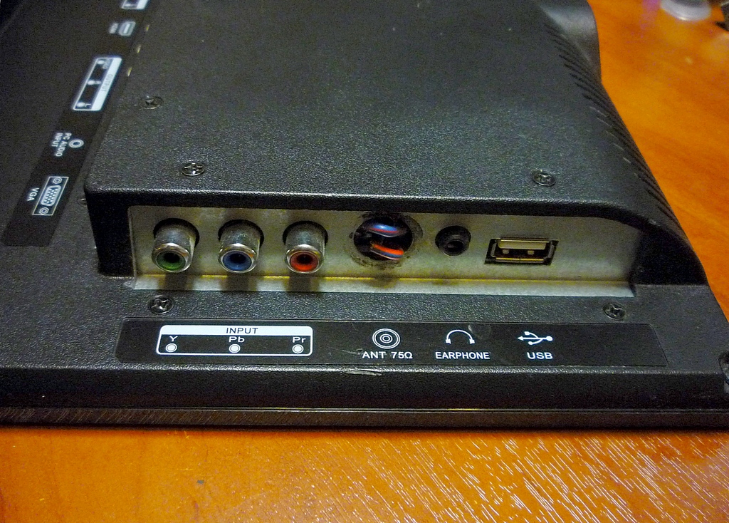 И VGA, и HDMI, и видео вход, и даже выход, стерео звук на вход и на выход, наушники, USB для просмотра фильмов и музыки, и даже компонентный видео вход! Только не понятно, зачем последний нужен в таком говне