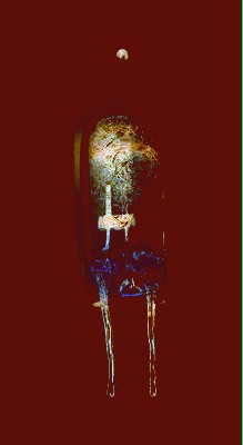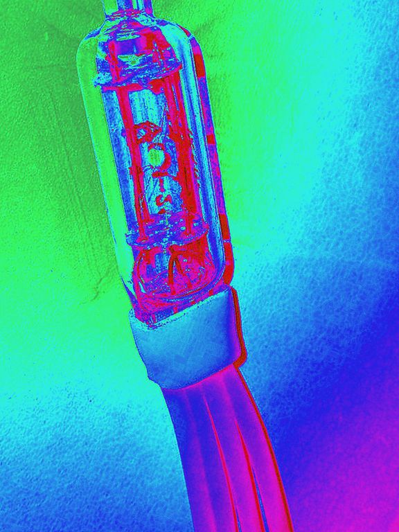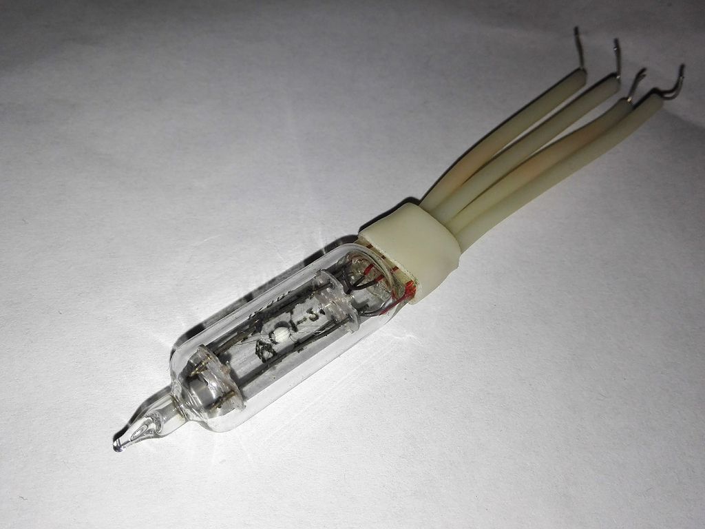 Это одноразовый элемент от лампы-вспышки. "Волосы" внутри - тонкая магниевая проволока в кислородном наполнении. Импульс от заряженного "кроной" конденсатора через синхроконтакт фотоаппарата поджигает проволоку и она красиво и ярко вспыхивает.