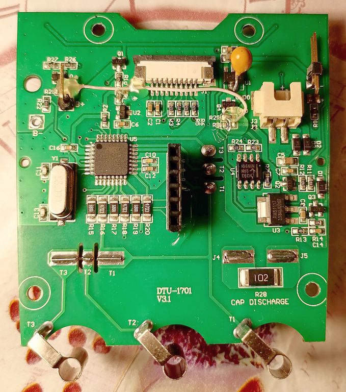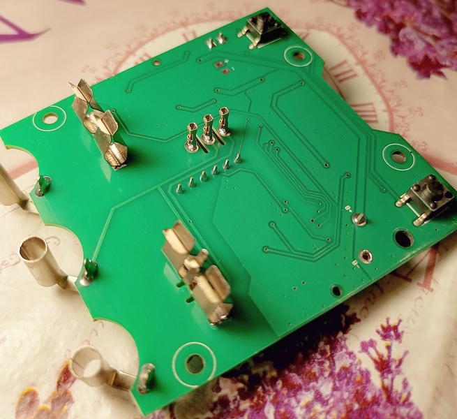 - Отмыть флюс на плате на точках пайки контактных ламелей и вообще весь недосмытый флюс. Отмывать спец. спиртосодержащим очистителем для электроники, а не какой-нибудь фигней. Измерительная схема очень чувствительна к любым паразитным емкостям и сопротивлениям.