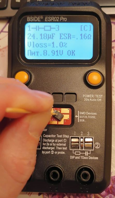 - Отмыть флюс на точках пайки площадки для теста SMD. Китайцы такой фигней не заморачиваются.