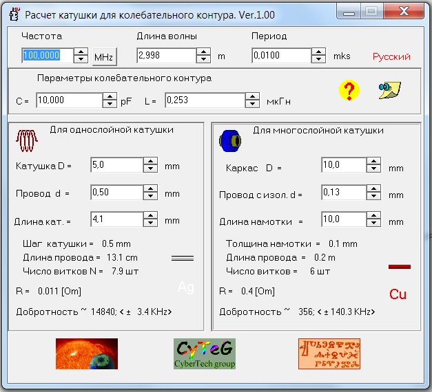 Программа расчета катушки для колебательного контураПрограмма не требует инсталляции, идет под Win 7.