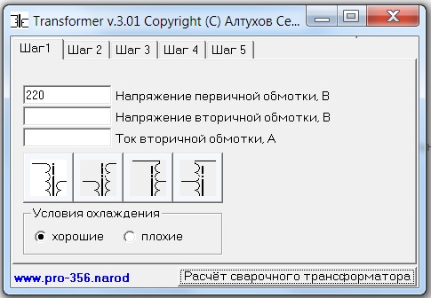 Программа расчета сетевого и сварочного трансформаторовНе требует инсталляции, идет под Win 7.
