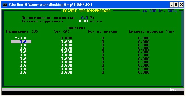 Клёвая программа расчета сетевых трансформаторов до 500ВтПрограмма ДОСовская, не требует установки, запускается на Win XP.
