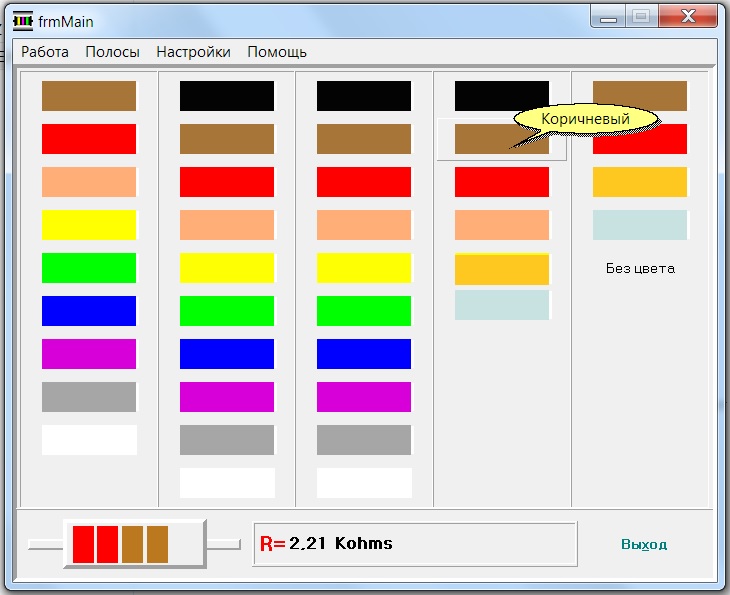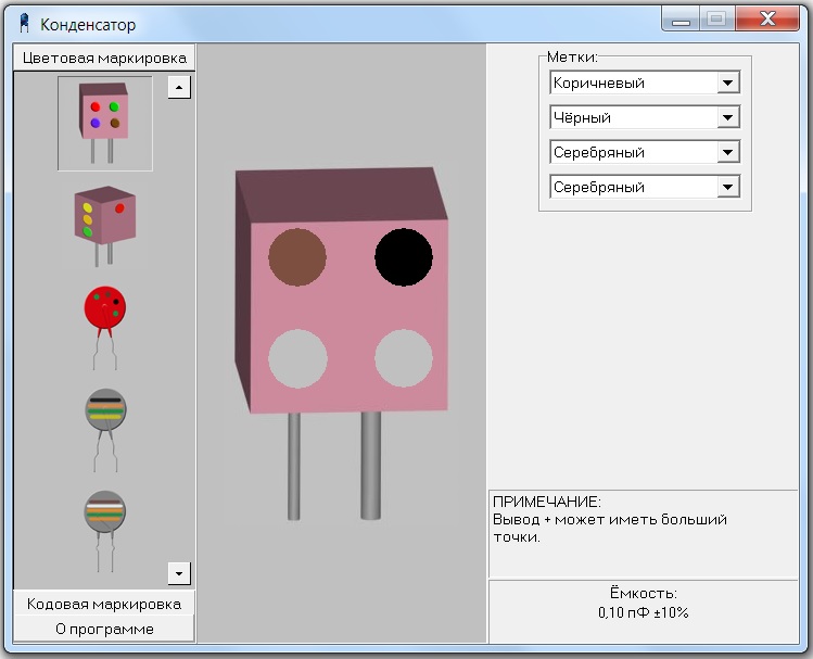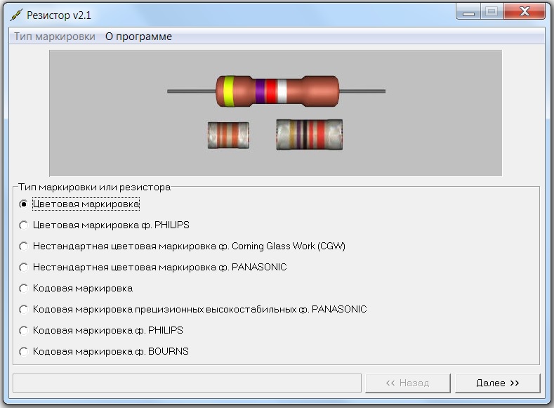 Программа декодирования цветовой маркировки резисторовНе требует инсталляции, идет под Win 7.