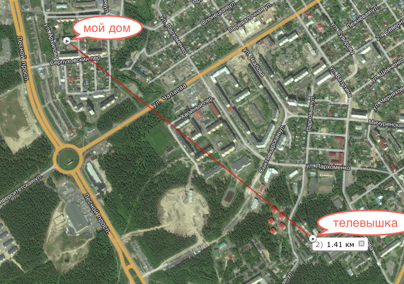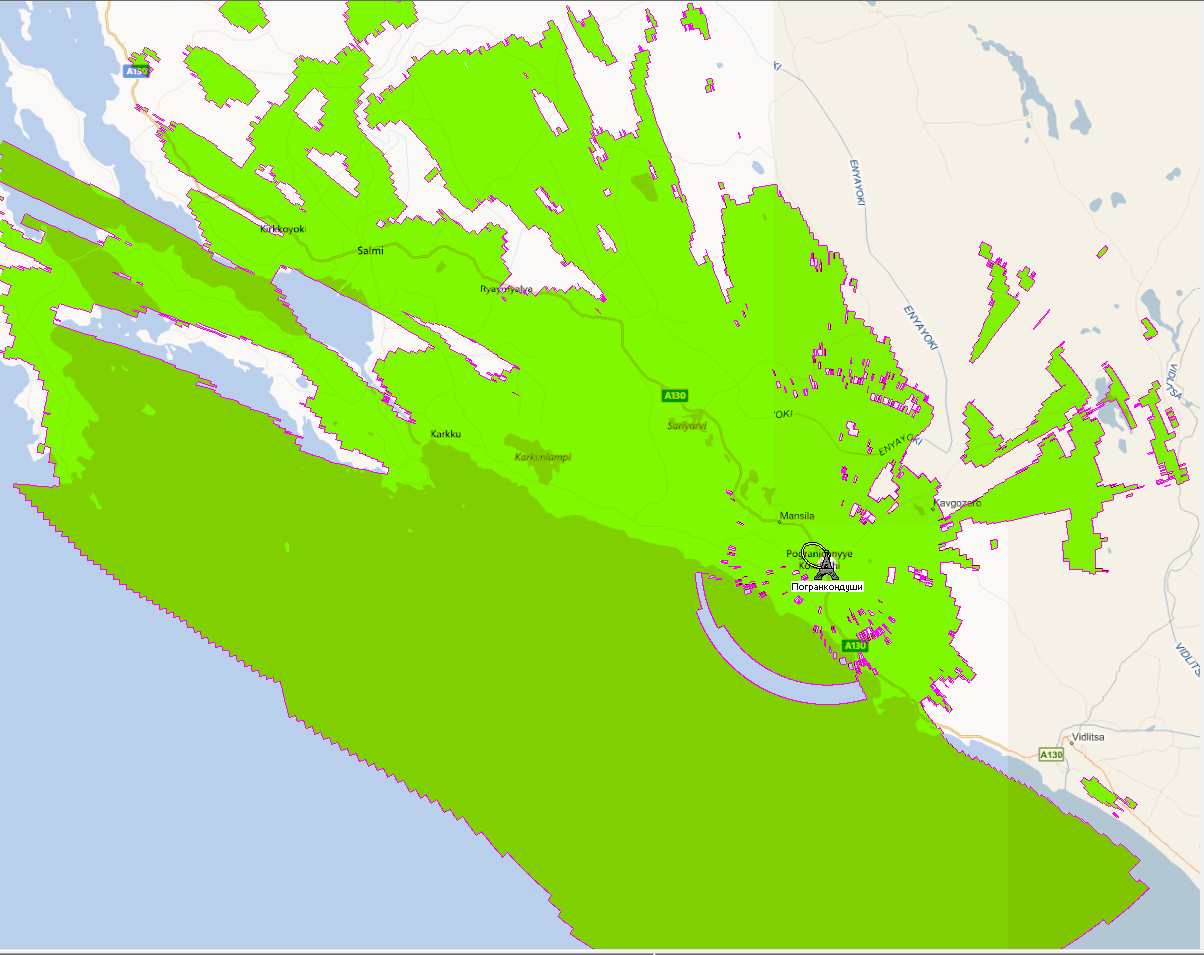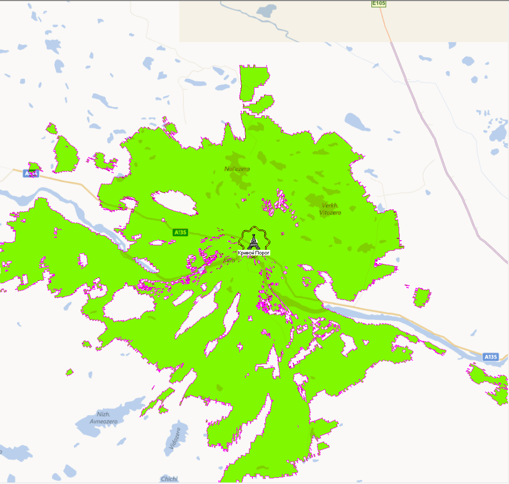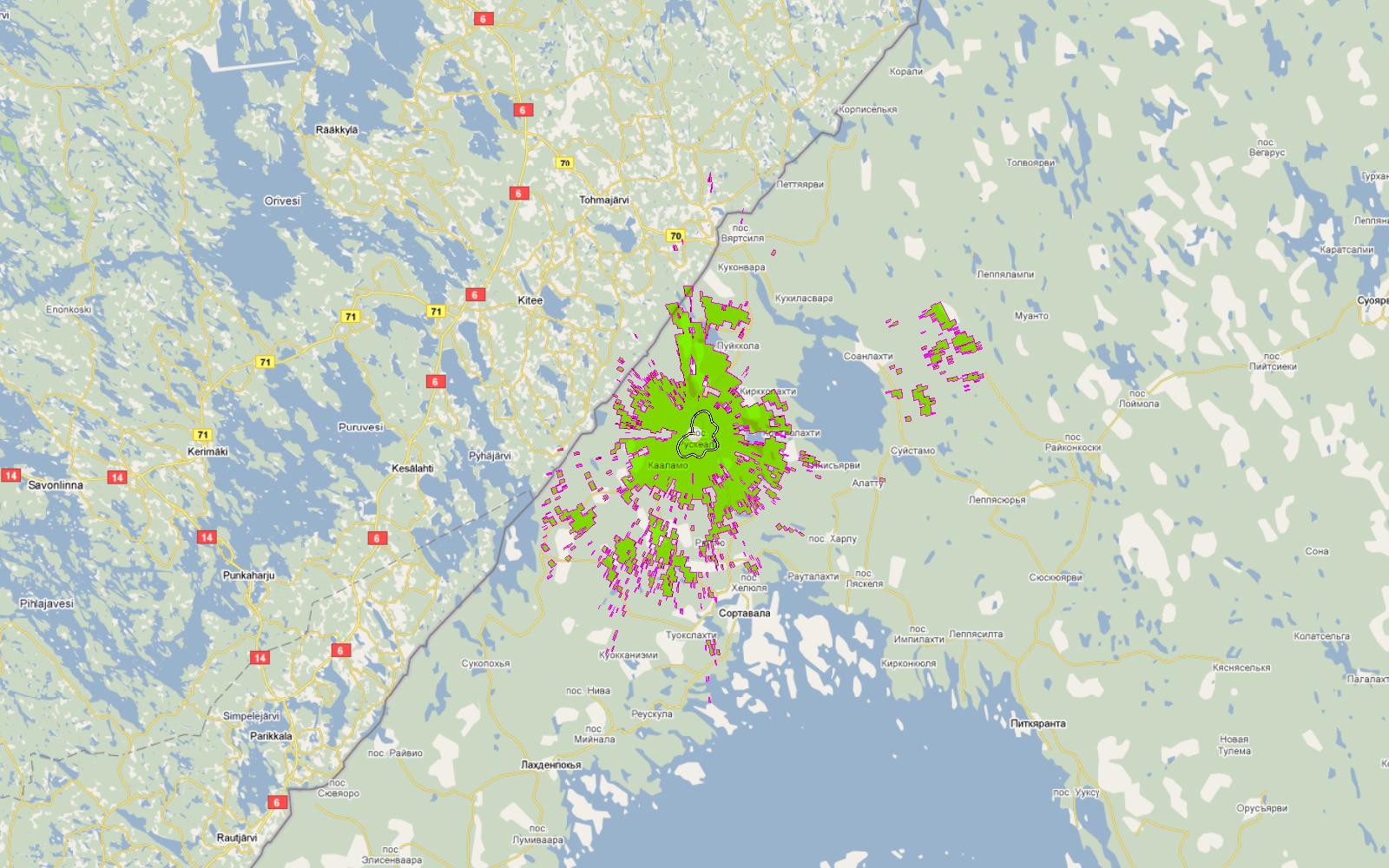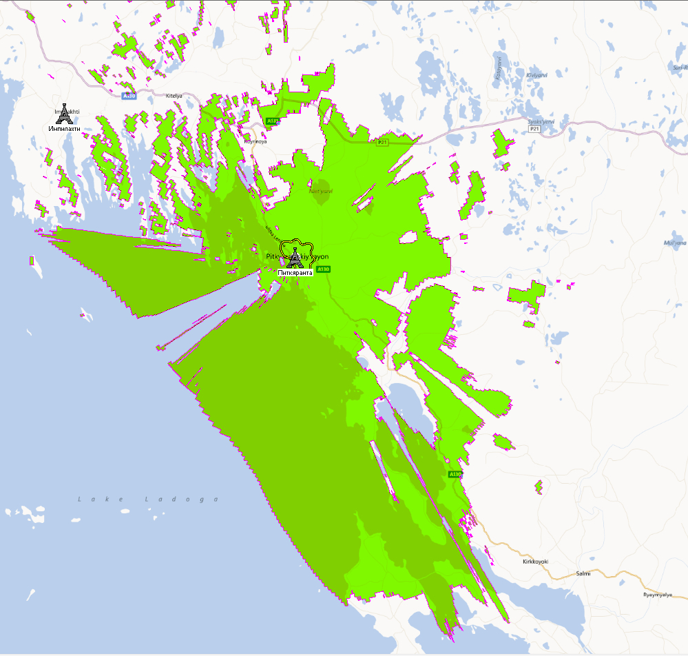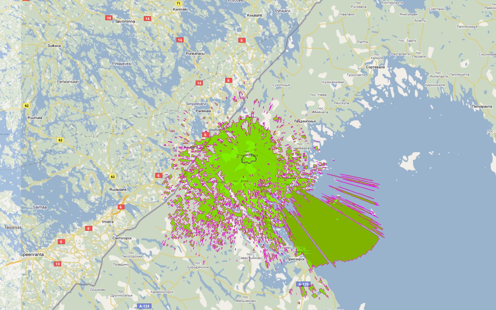 Для примера - зона охвата цифрового передатчика Петрозаводск, 25ВТК (506МГц)