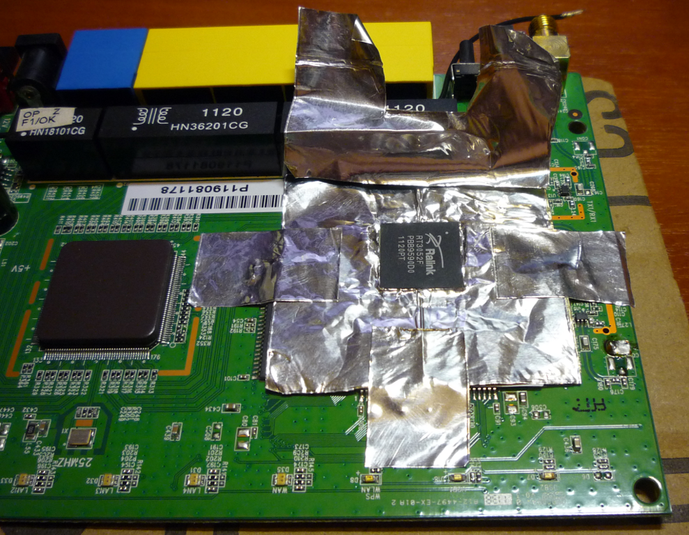 - как-либо беспокоить прожариваемый чип нельзя. В процессе повторной прожарки я решил его пошевелить. Это движение хоть и было едва заметно, но заводские шары объемные, припой тугоплавкий, сухой, а потому там, видимо, что-то замкнуло и процессор сдох. После включения не было никаких признаков жизни явно из-за КЗ, а после последующих перепаек коммутатор уже проходил инициализацию нормально и мигал светодиодами.