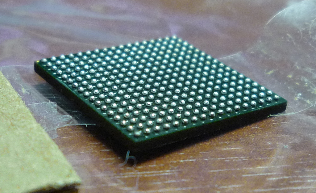 Потренировался и научился перепаивать данный чип без оснастки. Поскольку шары нормально не накатать, то нужно применять другую тактику.