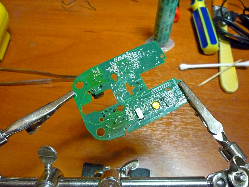 Новые кнопки установлены. Текстолит очень тонкий, поэтому выпайку старых кнопок пришлось осуществлять очень аккуратно феном паяльной станции с плавным повышением температуры и умеренным потоком воздуха.
