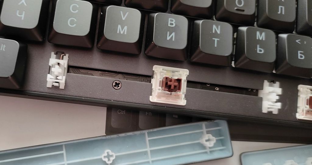 - Низкопрофильные коричневые свичи с довольно интересным тактильным откликом, которого нет даже на однотипных Kailh и Gateron(даже странно).