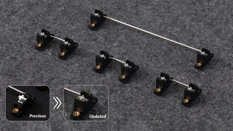 - Типовые Screw-In стабилизаторы. Нет жесткой привязки в фирменным наборам кейкапов.