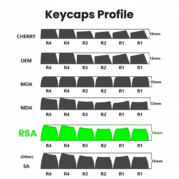 - Неплохие кейкапы c OSA профилем. Да, они не просвечиваются, да без кириллицы, но тем не менее. Кстати, не стоит покупать эту клавиатуру с кириллицей. Нанести кириллицу на эти кейкапы красиво не получится. Такая попытка их только изуродует. Между тем, имхо, эта клавиатура очень хорошо подойдет для освоения слепой печати. Печатать вслепую на ней одно удовольствие.