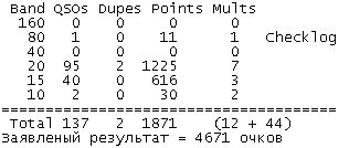 Поучаствовал в дневном туре на 20-15-10м. Результаты ниже.