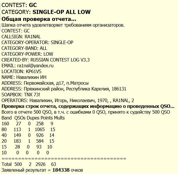 rn1nhf:Отличный результат у RN1NW - 12-е место в группе B (один оператор - много диапазонов) при 526 участниках (в этой группе).